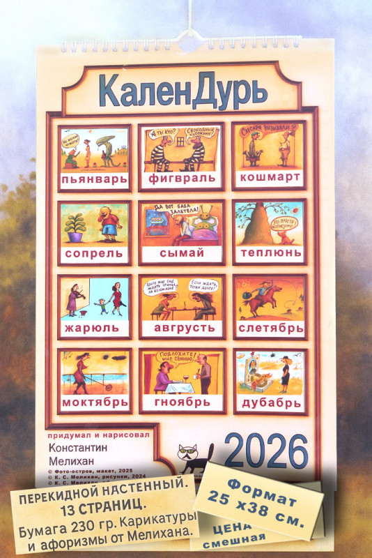 "Календурь", перекидной шуточный календарь, 13 стр., формат 25x38 см.