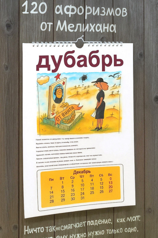 Автор календаря известный российский писатель Константин Мелихан. Календарь содержит подборку юмористических афоризмов автора.