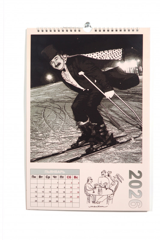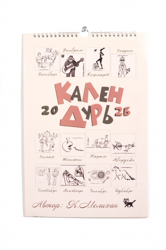 "Календурь", перекидной шуточный календарь, 13 стр., формат 25x38 см. Автор календаря известный российский писатель Константин Мелихан. Напечатан на высококачественной фотобумаге плотностью 210 г/м2.