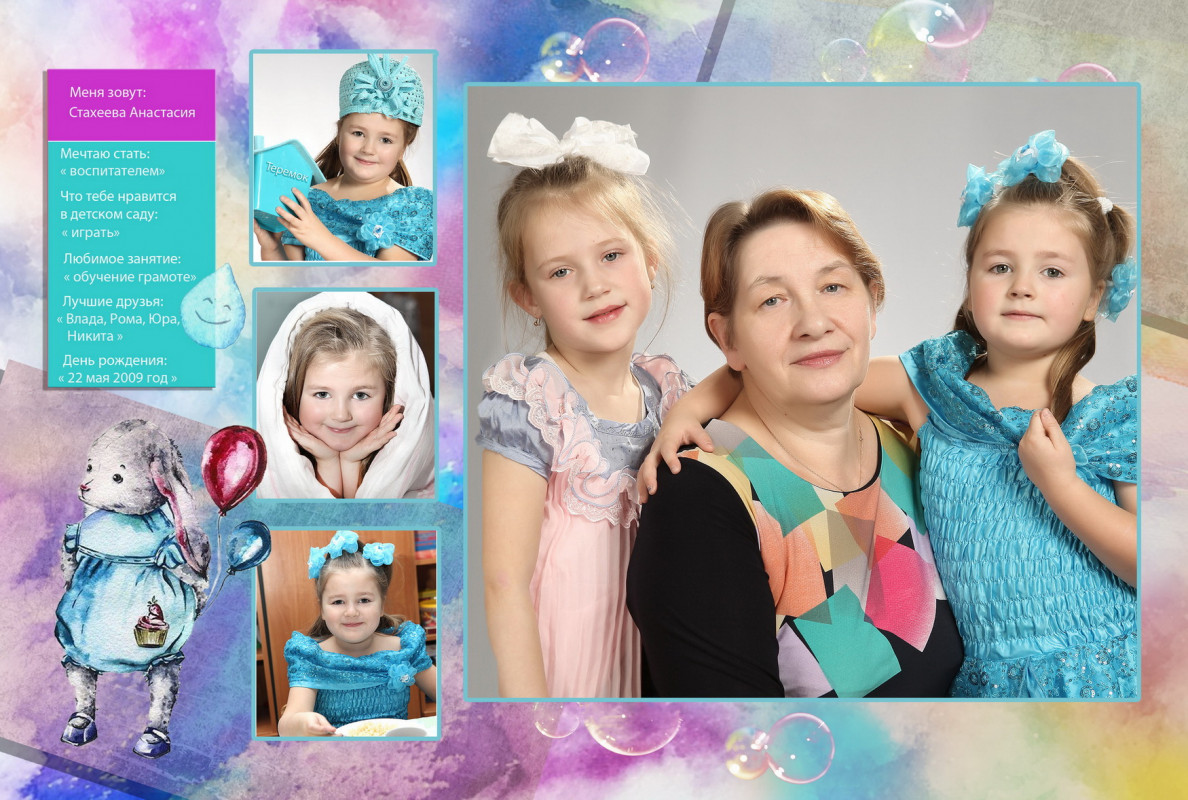 Формат альбома 20х20; 30х30. Стоимость соответствует общему прейскуранту цен. Ознакомиться с ценами можно в категории Выпускные альбомы. В стоимость книги входит : - Студийная фотосессия в детском саду - репортажная фотосессия в группе - вёрстка книги - сборка книги - 1 страница с оживающими фото. - альбом воспитателю в подарок.