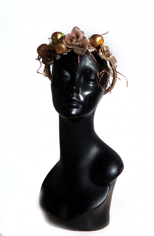 Венок золотой. Размер любой. Стоимость аренды в студии 200 рублей. Стоимость аренды на два дня 500 р. Цена шляпки 3000 рублей.