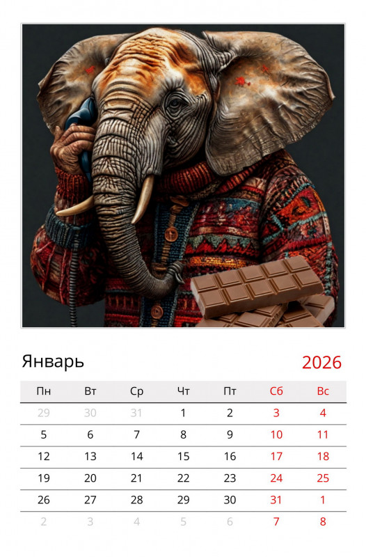 Календарь "У нас зазвонил телефон" перекидной, 25x38 см., 13 страниц. Распечатан на фотобумаге 210 г/м2., обеспечивающей высокую четкость изображения, яркие цвета и долговечность.