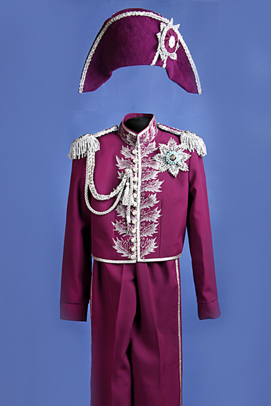 Костюм для мальчика из коллекции "Гусары" выполнен из габардина. украшен металлизированным шнуром. Стоимость аренды в студии и на балу 450 рублей. Стоимость аренды на два дня 1500 рублей. Цена костюма 20000 рублей