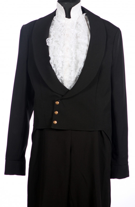 Костюм мужской с фраком из коллекции "Маскарад (кавалеры)" выполнен из габардина. Стоимость аренды в студии и на балу 550 р. Стоимость аренды на два дня 1500 р.Цена костюма 20000 рублей