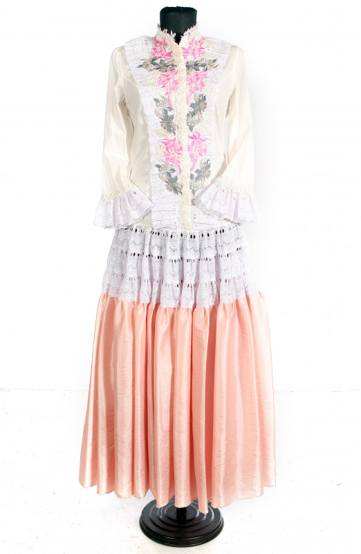 Платье из коллекции "Маскарад ( дамы)" выполнено по мотивам дворцовых нарядов 19 века. Платье из тафты и кружева.Украшено вышивкой. Стоимость аренды в студии или на балу 550 рублей. Стоимость аренды на два дня 1500 рублей. Цена платья 17000 рублей