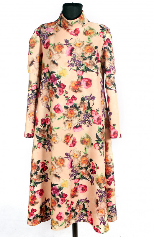 Платье женское из коллекции "Круэлла" выполнено из трикотажа с цветочным принтом.Стоимость аренды в студии или на балу 550 рублей. Стоимость аренды на два дня 1500 рублей. Цена платья 7000 р.