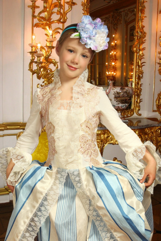 Платье из коллекции "Версальская роза",выполненное по образцам дворцовых костюмов Франции 18 века. Размер 140. Материал трикотаж и тафта. Украшено авторской вышивкой и кружевом. Стоимость аренды 450 р. при условии использования в студии или на балу. Стоимость аренды на 2 дня 1500 руб. Цена платья 20 000