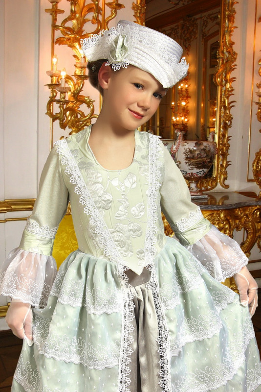 "Платье из коллекции ""Версальская роза"",выполненное по образцам дворцовых костюмов Франции 18 века. Размер 134. Материал парча, кружево. Стоимость аренды 450 р. при условии использования в студии или на балу. Стоимость аренды на 2 дня 1500 руб. Цена платья 20 000. "
