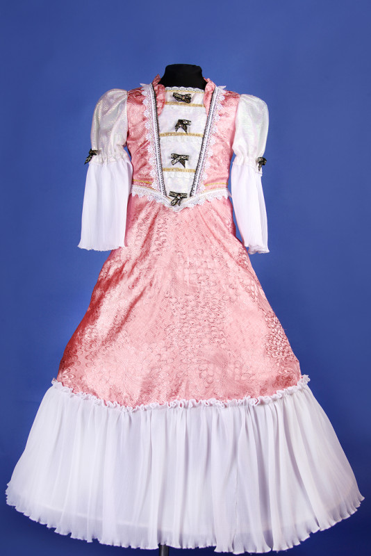 "Платье из коллекции ""Версальская роза"",выполненное по образцам дворцовых костюмов Франции 18 века. Размер 134. Материал атлас, гофрированный шелк. Стоимость аренды 450 р. при условии использования в студии или на балу. Стоимость аренды на 2 дня 1500 руб. Цена платья 5 000.