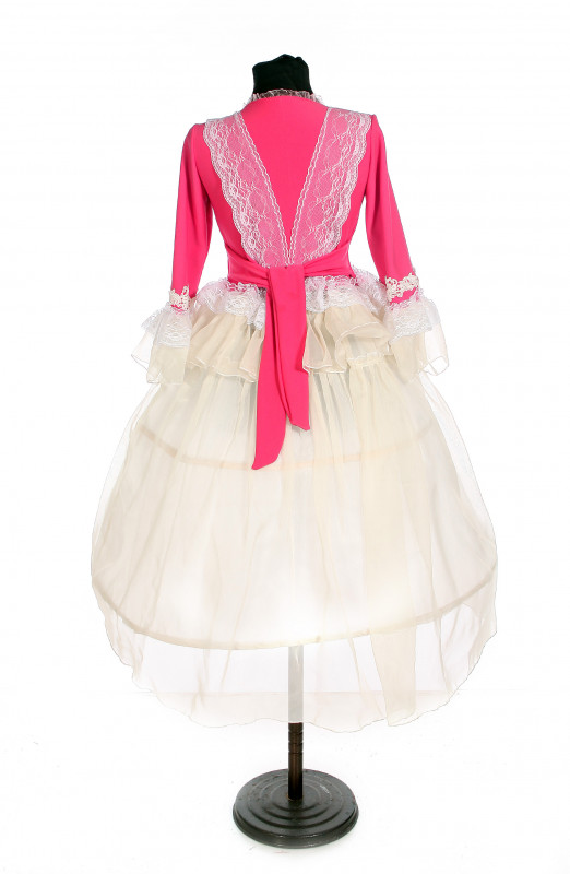 Платье из коллекции "Версальская роза",выполненное по образцам дворцовых костюмов Франции 18 века. Размер 140. Материал трикотаж и органза. Украшено аппликацией и кружевом. Стоимость аренды 450 р. при условии использования в студии или на балу. Стоимость аренды на 2 дня 1500 руб. Цена платья 20 000.