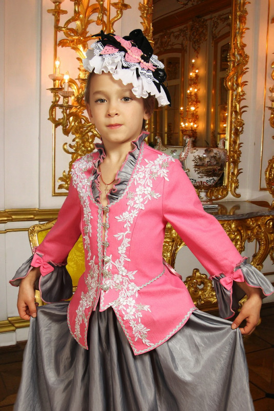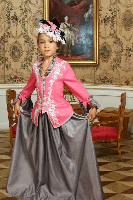 "Платье из коллекции ""Версальская роза"",выполненное по образцам дворцовых костюмов Франции 18 века. Размер 128. Материал матовый атлас и габардин.. Украшено вышрвкой и кружевом. Стоимость аренды 450 р. при условии использования в студии или на балу. Стоимость аренды на 2 дня 1500 руб. Цена платья 20 000.