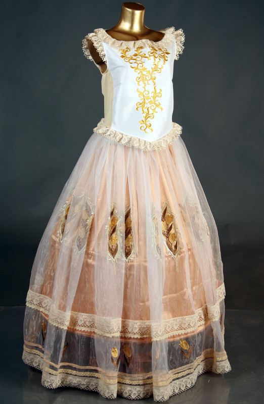 Платье женское из коллекции"Маскарад (дамы)" выполнено по образцам бальных платьев 19 века. Материал органза с вышивкой , тафта. Стоимость аренды в студии и на балу 550 р. Стоимость аренды на два дня 1500 р. Цена платья 15000 р.