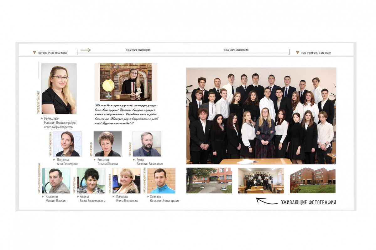 — Оживающие фотографии (интервью каждого ученика, интервью учителей, видеоролики общие)